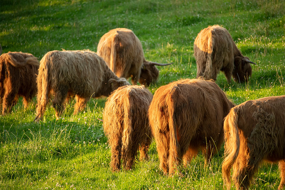 Das Fleisch des Hochlandrinds ist einzigartig. Durch die extensive Fütterung wachsen die Tiere langsam heran; demzufolge wird das Fleisch besonders fein und schmackhaft.